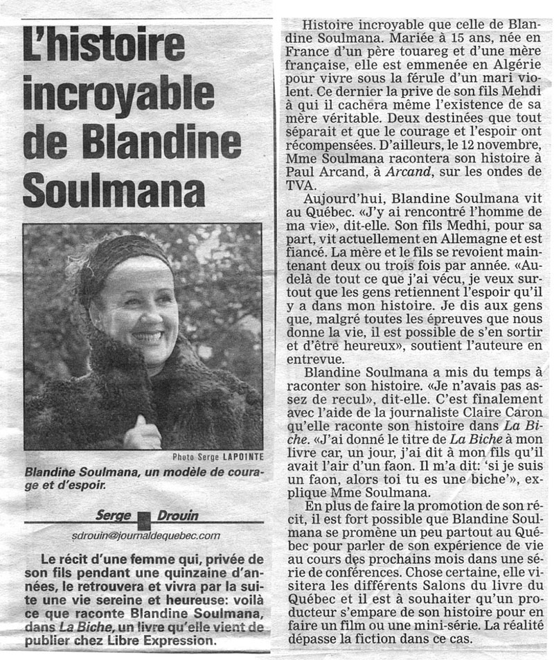 L'histoire incroyable de Blandine Soulmana le récit d'une femme qui, privé de son fils pendant une quinzaine d'années, le retrouvera... - Dernière Heure