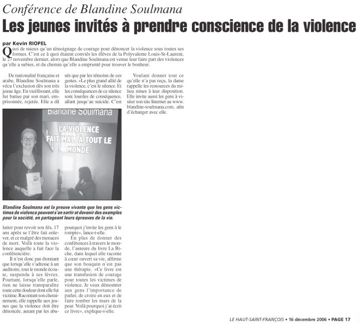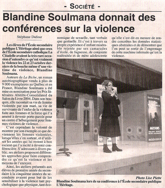 Les jeunes invités à prendre conscience de la violence, Conférence de Blandine Soulmana - Le journal de Cornwall